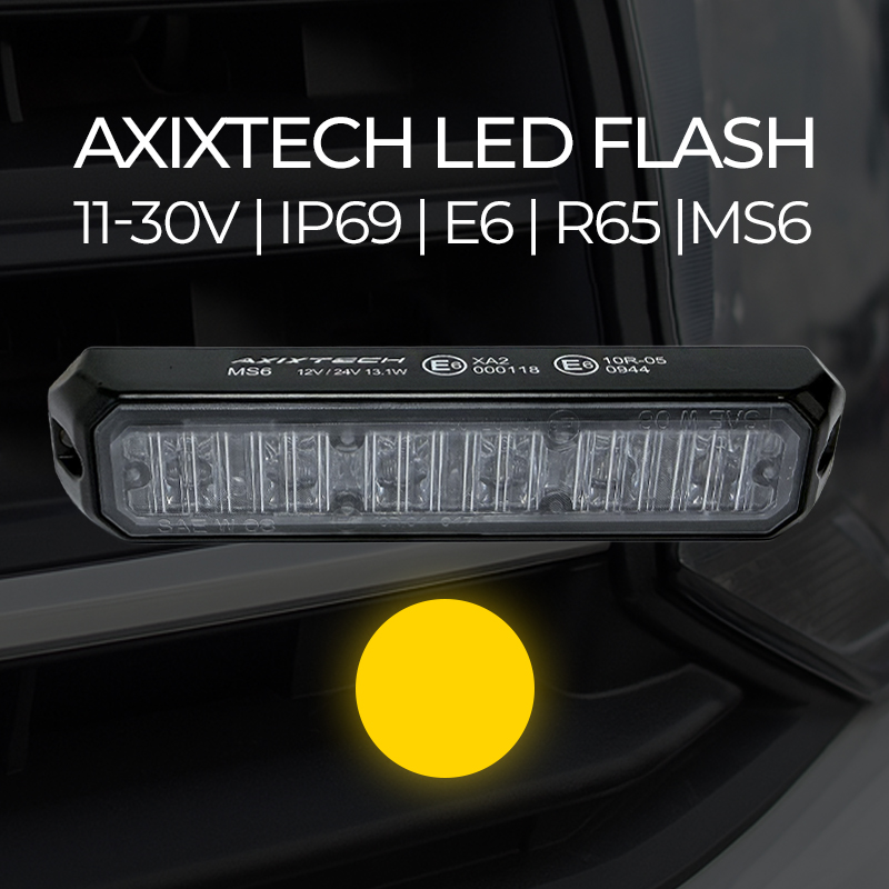 AXIXTECH MS6 er en kraftig og kompakt LED flash til planmontering -bl.a. i kofanger, udviklet til køretøjer der kræver tydelig advarselslysning.